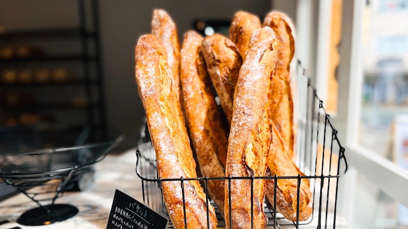 こちらは看板商品の「バケット(280円)」。酵母熟成54時間で、パリッとした食感と味わい深いおいしさが人気となっています。店内にはこちらのバケットを使用したパンも多数ありましたよ!