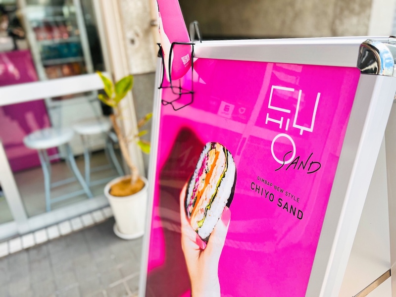 ピンクの暖簾がキュートでインパクト抜群!な新感覚のキンパ専門店「千代サンド」をご紹介します♪