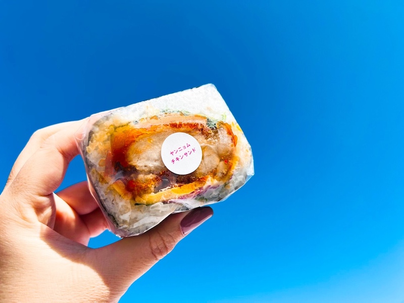 定番の「千代サンド(190円)」はシーチキンやカニカマ、卵焼き、レッドキャベツや小松菜のナムルなど野菜がたっぷりと入ったヘルシーなメニュー。しっかりとお野菜を取ることができるので健康志向の方にもおすすめ!