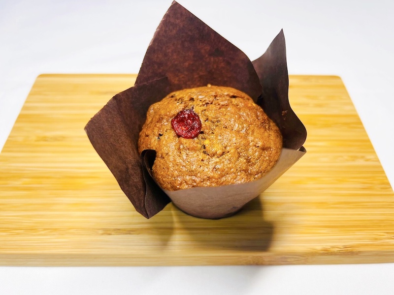 クランベリーやりんご、バナナ、くるみなど具だくさんのマフィン。フルーツやナッツの入った食べごたえのあるフレーバーで、シナモンやスパイスの香りが口の中に広がってとっても美味しい!紅茶との相性も抜群で朝食にもおすすめです。