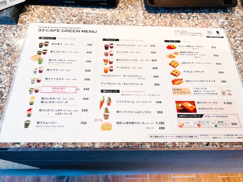 ビルの1階にある33CAFE GREENですが、こちらは青汁で有名なアサヒ緑健のビル。そう、33CAFE GREENはアサヒ緑健が運営する”青汁カフェ”なんです♪
