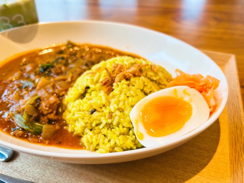 付け合わせには人参のマリネ、とゆで卵。今回訪れたのは10:00ごろでしたが、朝ごはんとしても最高なカレーでした♪