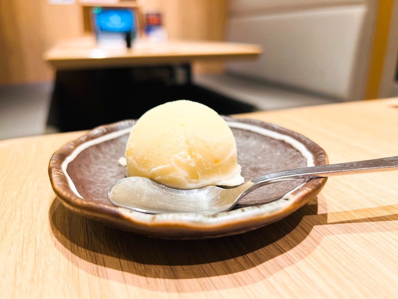 食後のデザートはゆずのシャーベット。鼻からスッと抜ける爽やかな柚子の風味が〆にぴったりでした♪