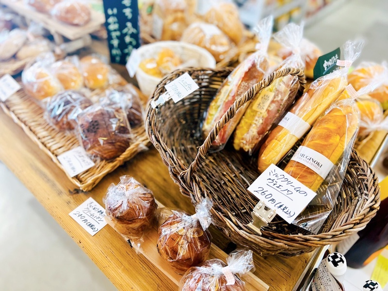 パンコーナーには福岡市内に3店舗を展開する「MUGINOKI」の朝焼きたてのパンが並んでいますよ♪