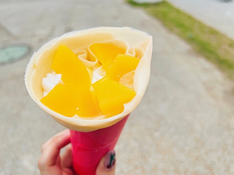 現在の季節メニューは夏季限定の「マンゴークレープ(果肉入り)600円」でした!