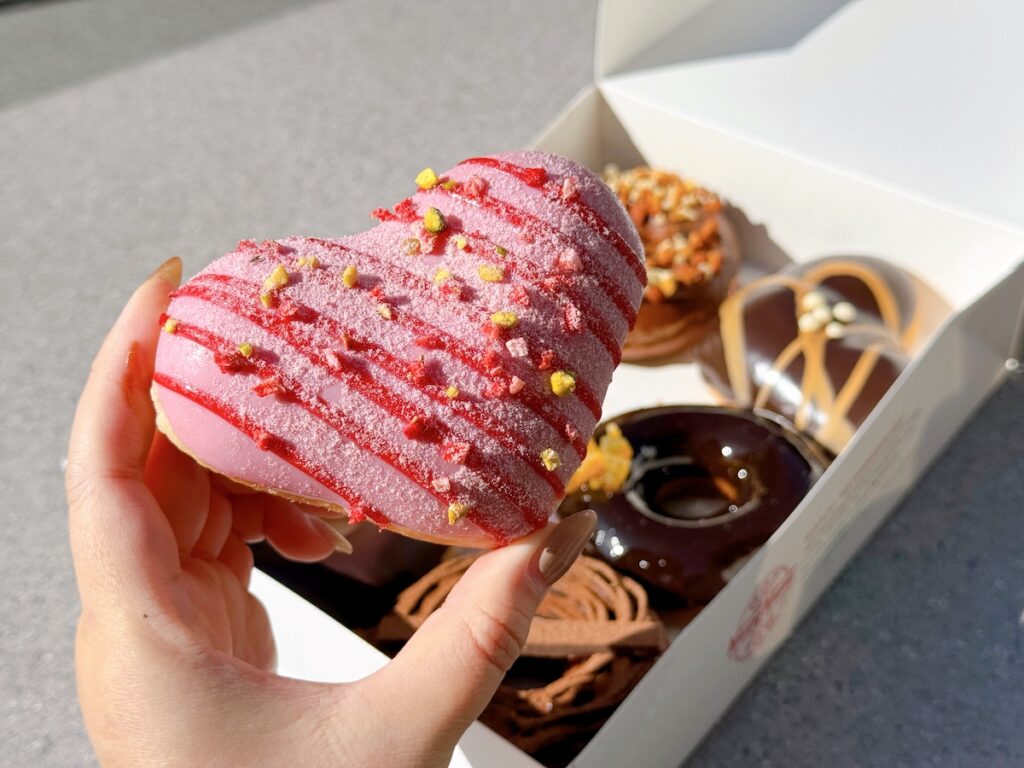 『バレンタイン ボックス(3個)』(1,036円・イートイン1,056円)は生チョコ モンブラン、ルビー & ストロベリー、オランジェット リッチの特別感のある限定ドーナツ3種入りのボックス!ちょっとした手土産にもおすすめですよ♪
