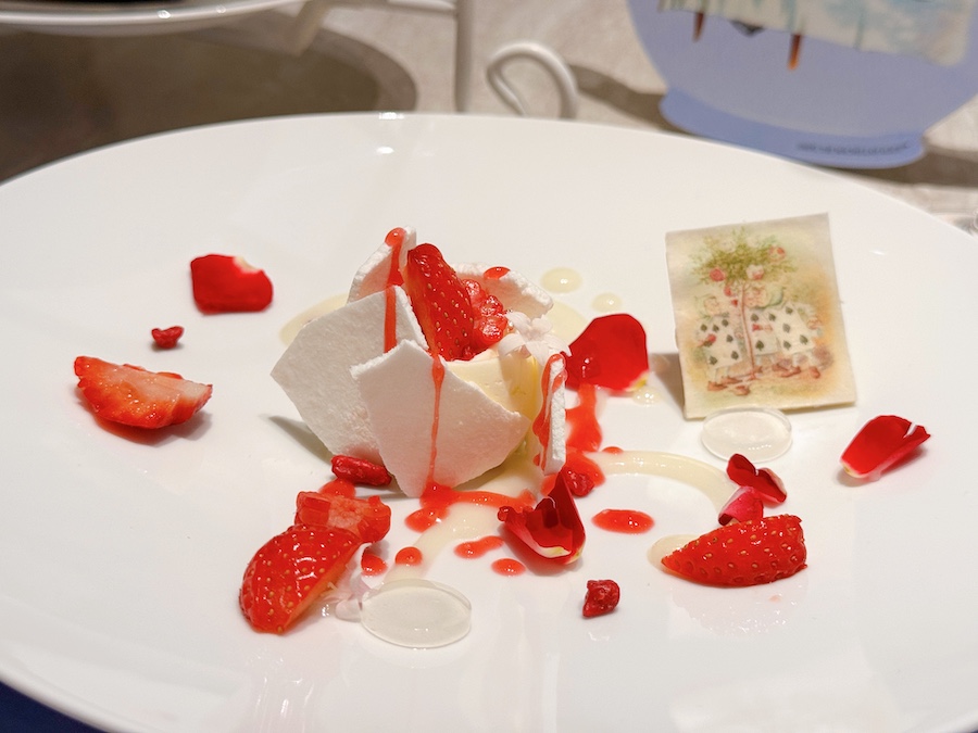 オプションで追加できるスペシャルデザートは、物語の中で白い薔薇を赤いラズベリーソースで塗り替える、あの名シーンを再現した「ペイント ザ ローズ」。