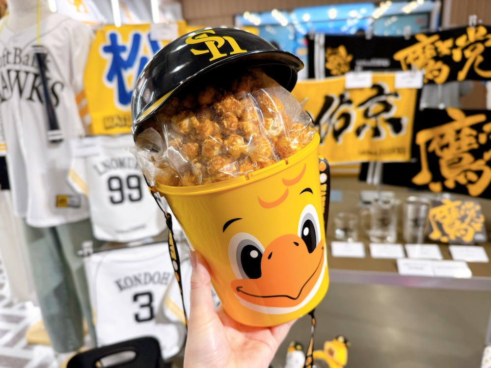購入時にポップコーンが詰まった状態で提供されます。次回以降、このバケツをドームへ持参するとお得に購入できる嬉しい特典も!