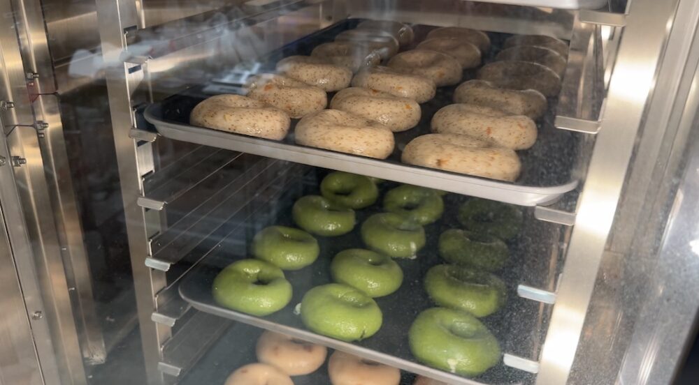 店内奥には厨房を構えており、ベーグル作りの臨場感も堪能することができます。天神という立地から、仕事帰りの方や学生さんなど、幅広い層の方が立ち寄りやすいのも嬉しいポイントですね。