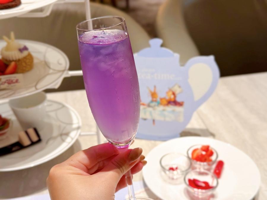 レモンをかけるとブルーのドリンクがパープルへと変わる不思議なドリンクで、シュワっとはじけるような口当たりは甘いスイーツとの相性も抜群♪