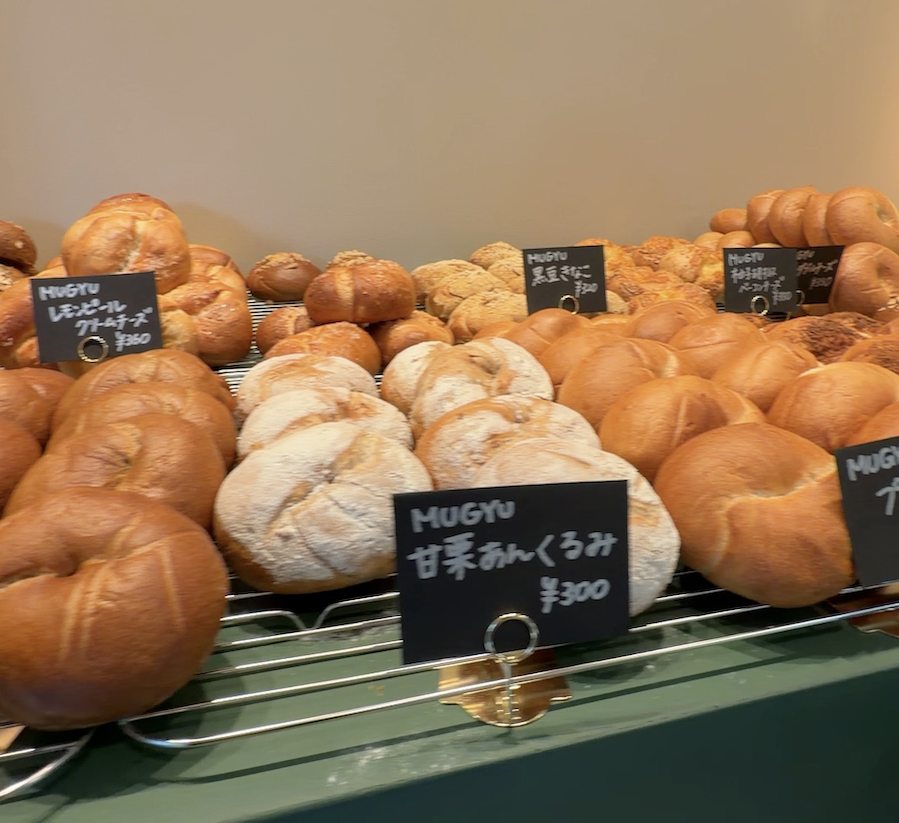 BAGELish.の最大の特徴は、MUGYU(むぎゅ)・MOCHI(もち)・MOFU(もふ)という3つの異なる食感を楽しめること。それぞれの食感に合わせて、天然酵母や自家製酵母、イーストを使い分けているそうです。一般的なドーナツ型ではなく、中身がぎゅっと詰まった“まんまる”でずっしりとした重みのあるフォルムが、満足度の高さを物語っています。