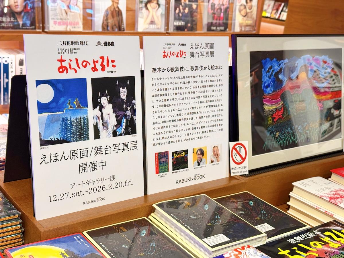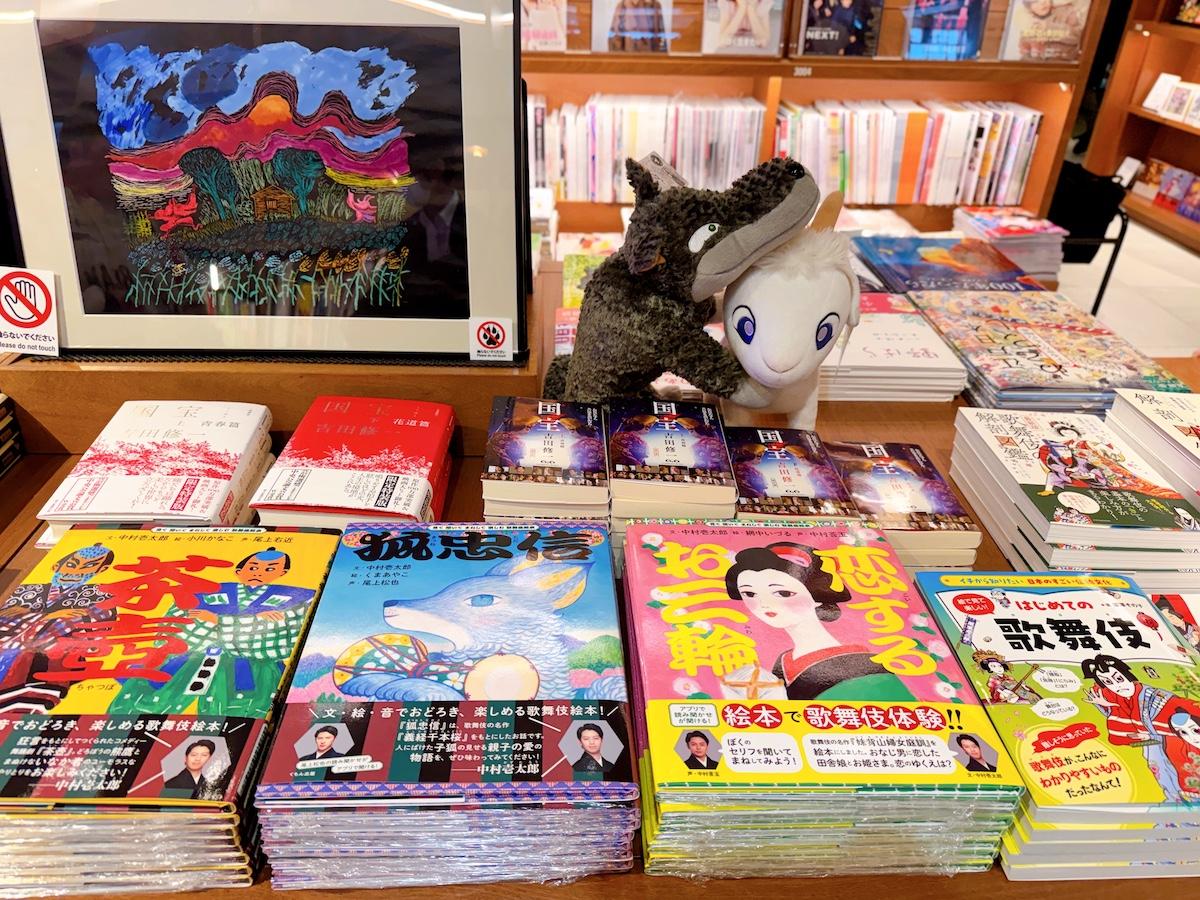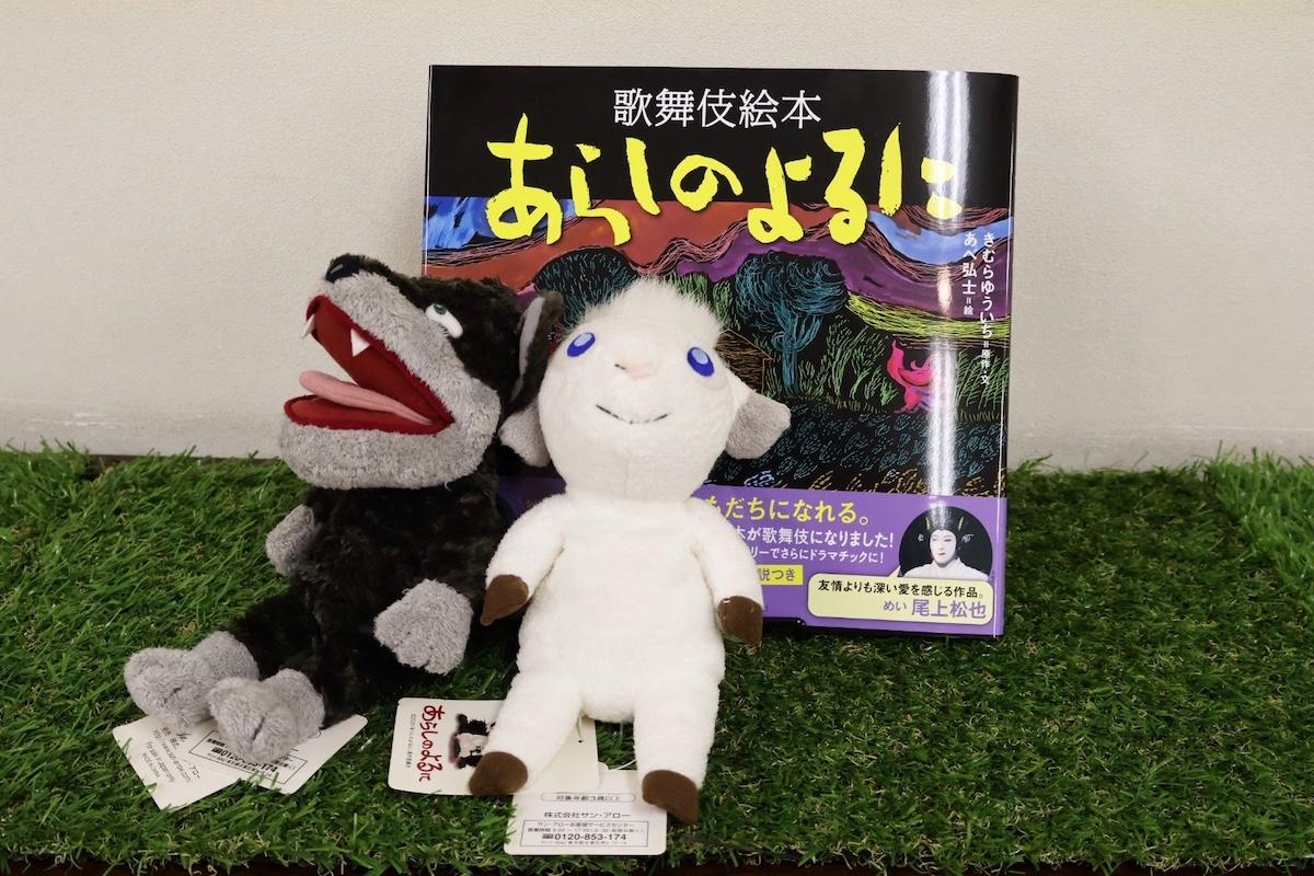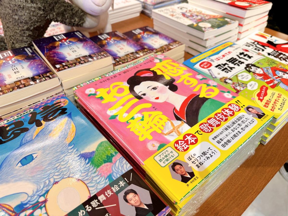 歌舞伎初心者でも楽しめるような書籍も並んでいました。二月花形歌舞伎 『あらしのよるに』でめい役を演じる中村壱太郎さんの絵本も!