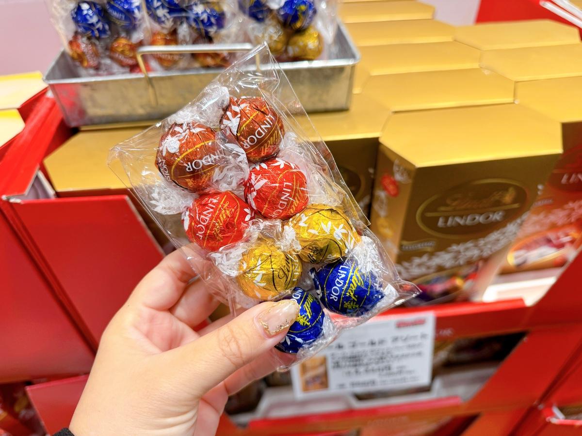 人気チョコレートもコストコでは大きな箱での販売ですが、ここではフレーバー違いが数種類並び、個包装で購入できるような形になっていました。もちろん通常サイズでの販売もあるので、今の時期はクリスマスギフトとしても重宝しそうですね。