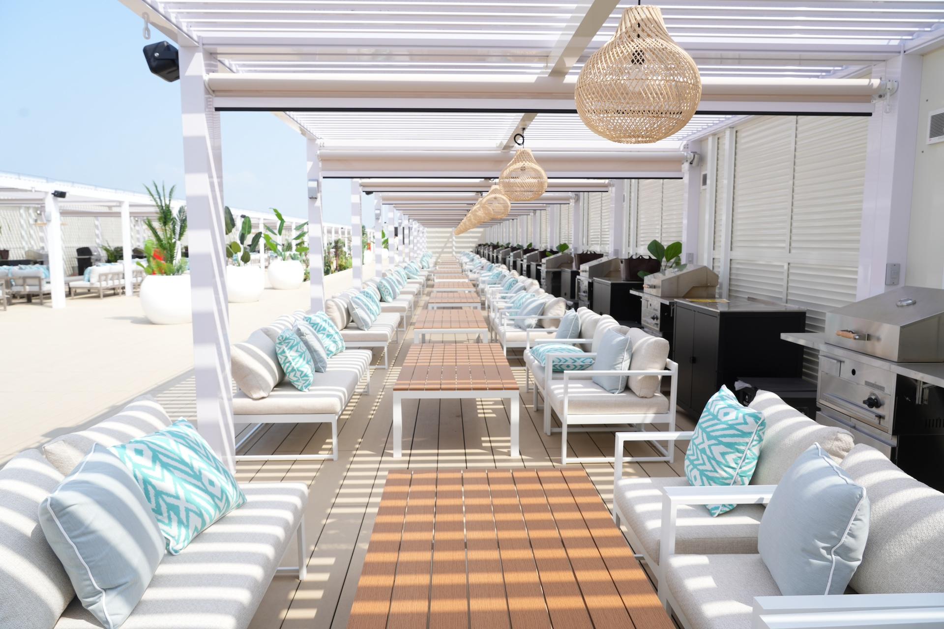 中に入るとそこに広がるのはビーチリゾートをイメージした非日常的な空間!博多駅前とは思えない広々とした開放感があります。