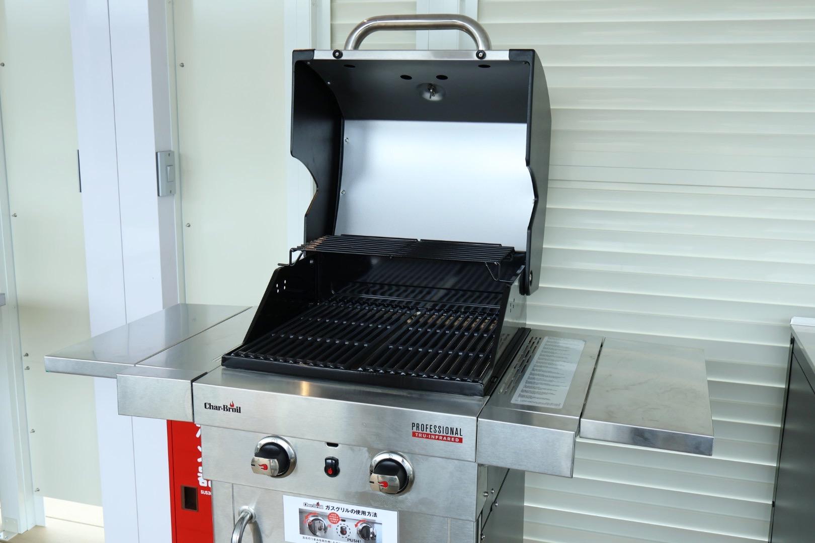 12名席には2個、6名席には1つのグリルが完備されています。こちらはタイシステムオリジナルのグリルで、強い火力と煙が出にくいところが特徴です。