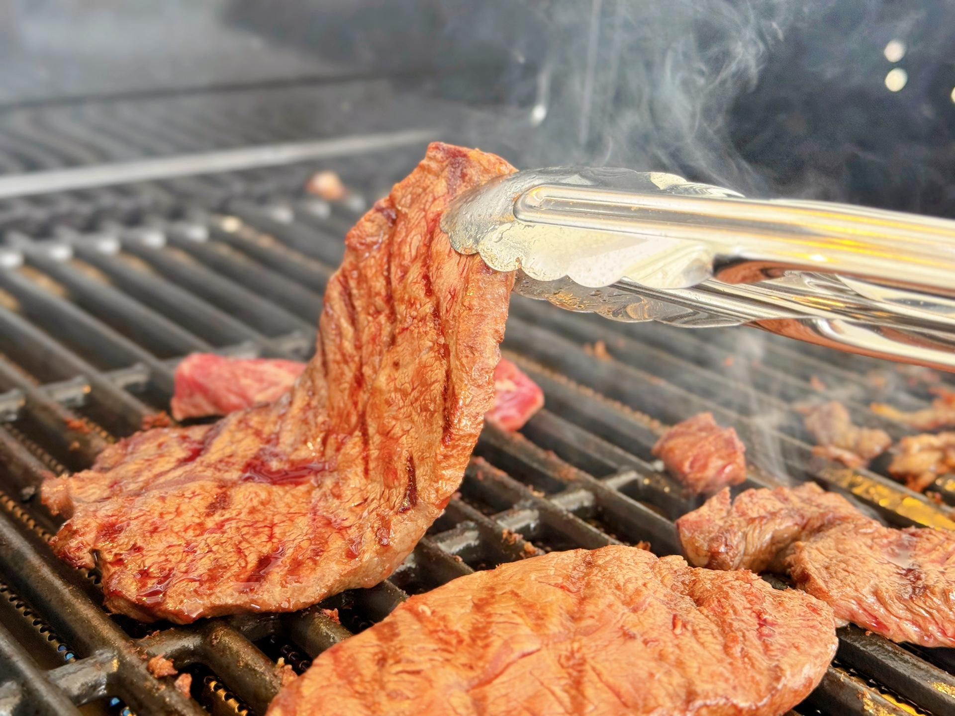 開放感を感じながら豪快に焼いていきます。お肉が焼けるおいしそうな香りが食欲をそそりますね!