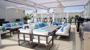 一番奥にはスクリーンが完備されていて、今後はホークスの生中継などバーベキューをしながら盛り上がることができる映像が流す予定なのだそう。