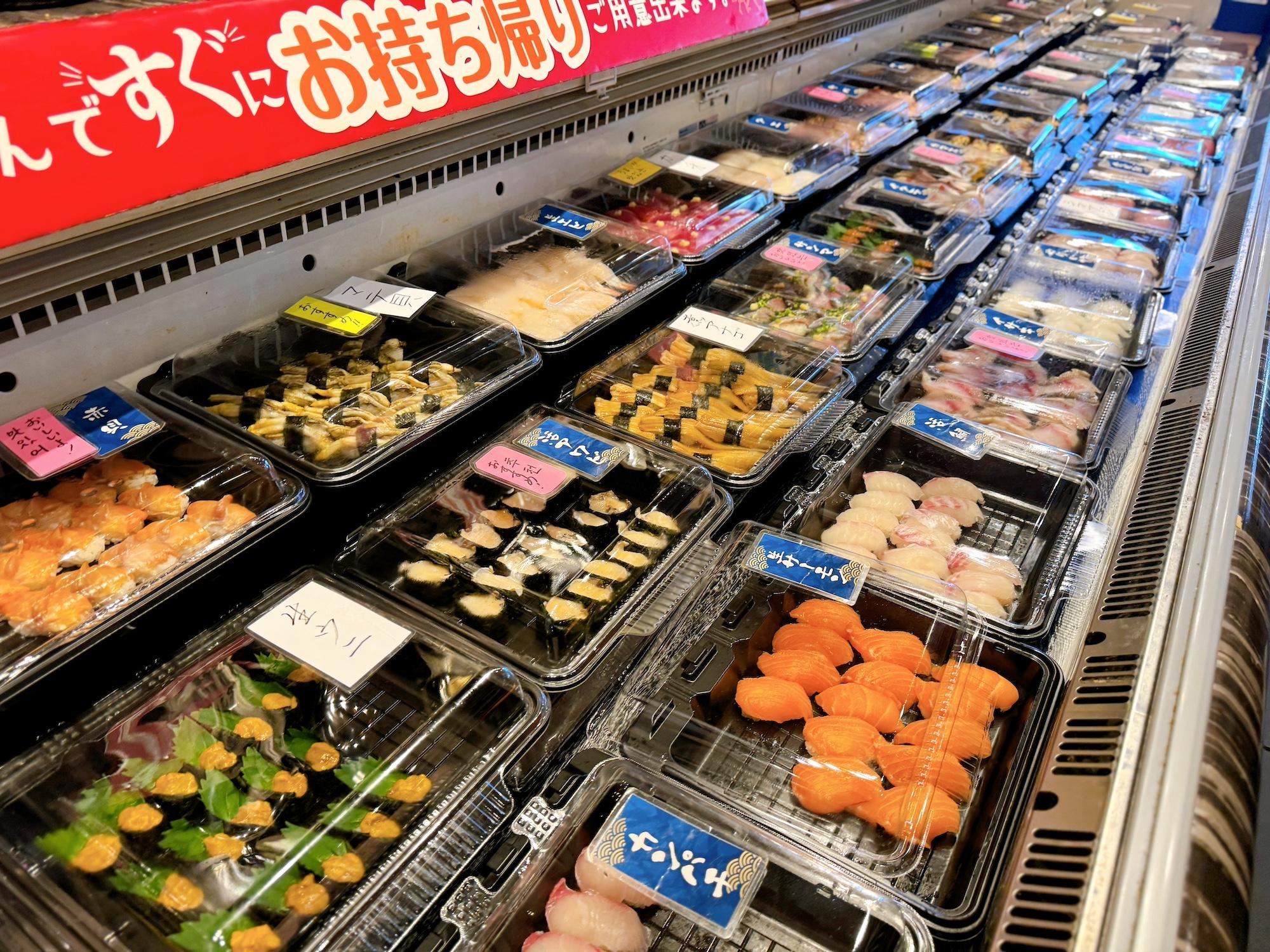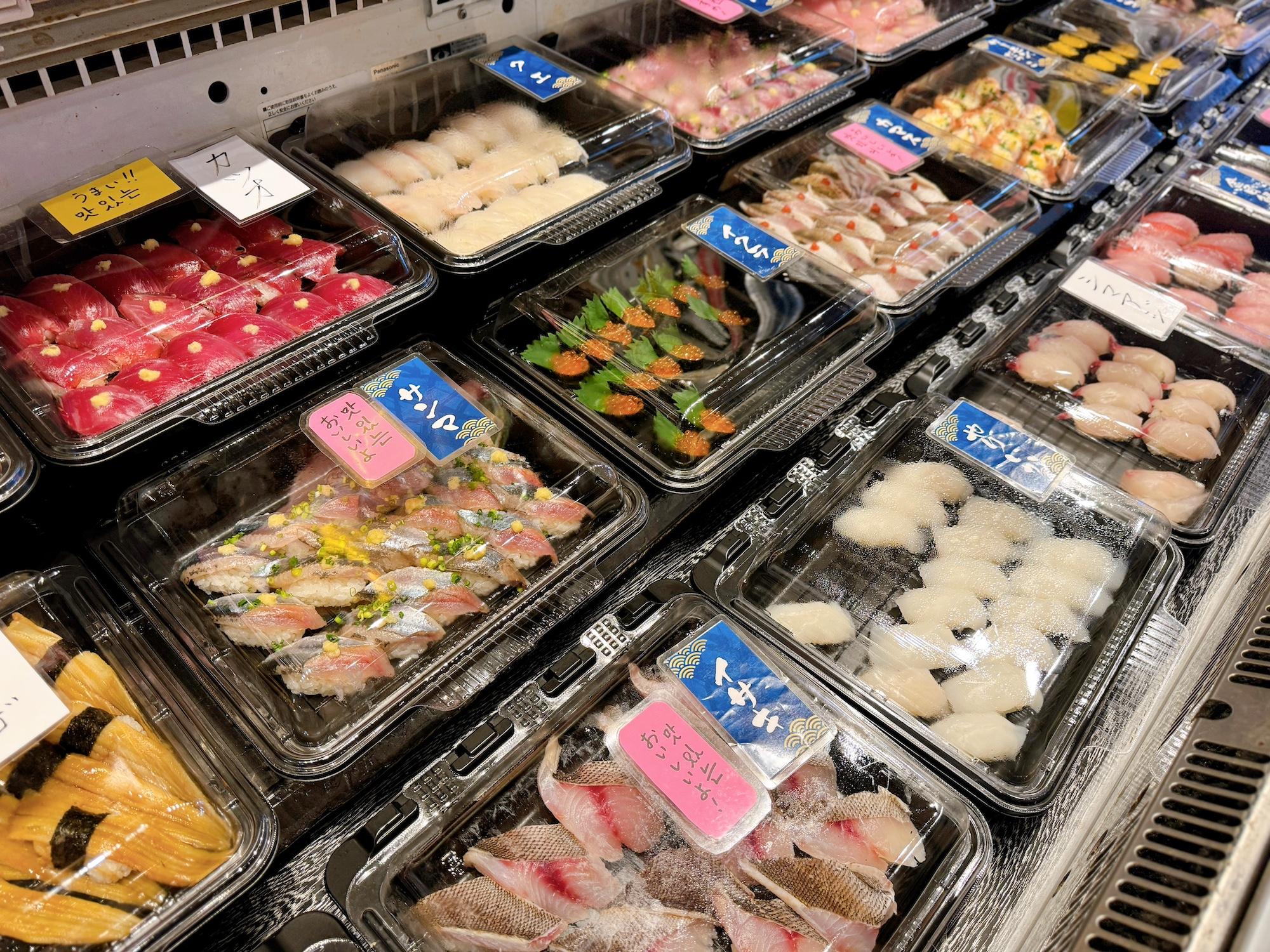 お寿司にはカバーがかかっているので鮮度も守られていて安心ですね。