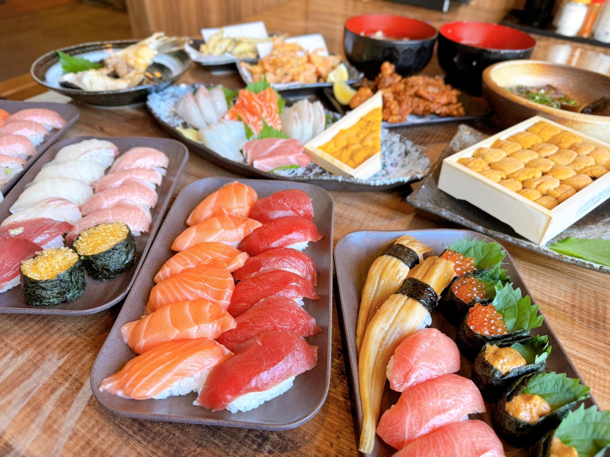 もちろん食べ放題なので好きなネタを何度でも食べてOK!ウニもいくらもホタテも大トロも……本当〜〜〜に贅沢!