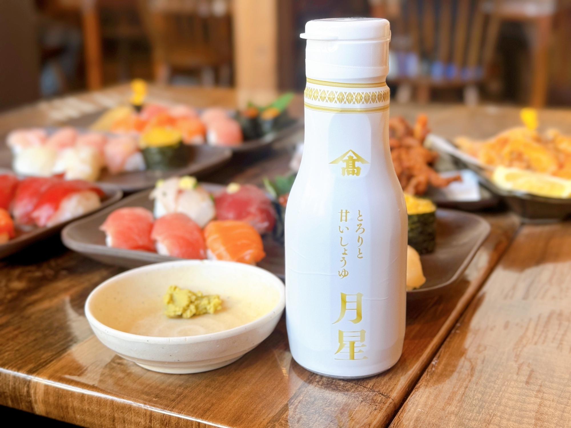 お醤油にはとろみと甘味が特徴の「とろりと甘いしょうゆ 月星」を使用。お寿司のおいしさを更に引き立ててくれます♪こちらのお醤油は購入も可能ですよ。