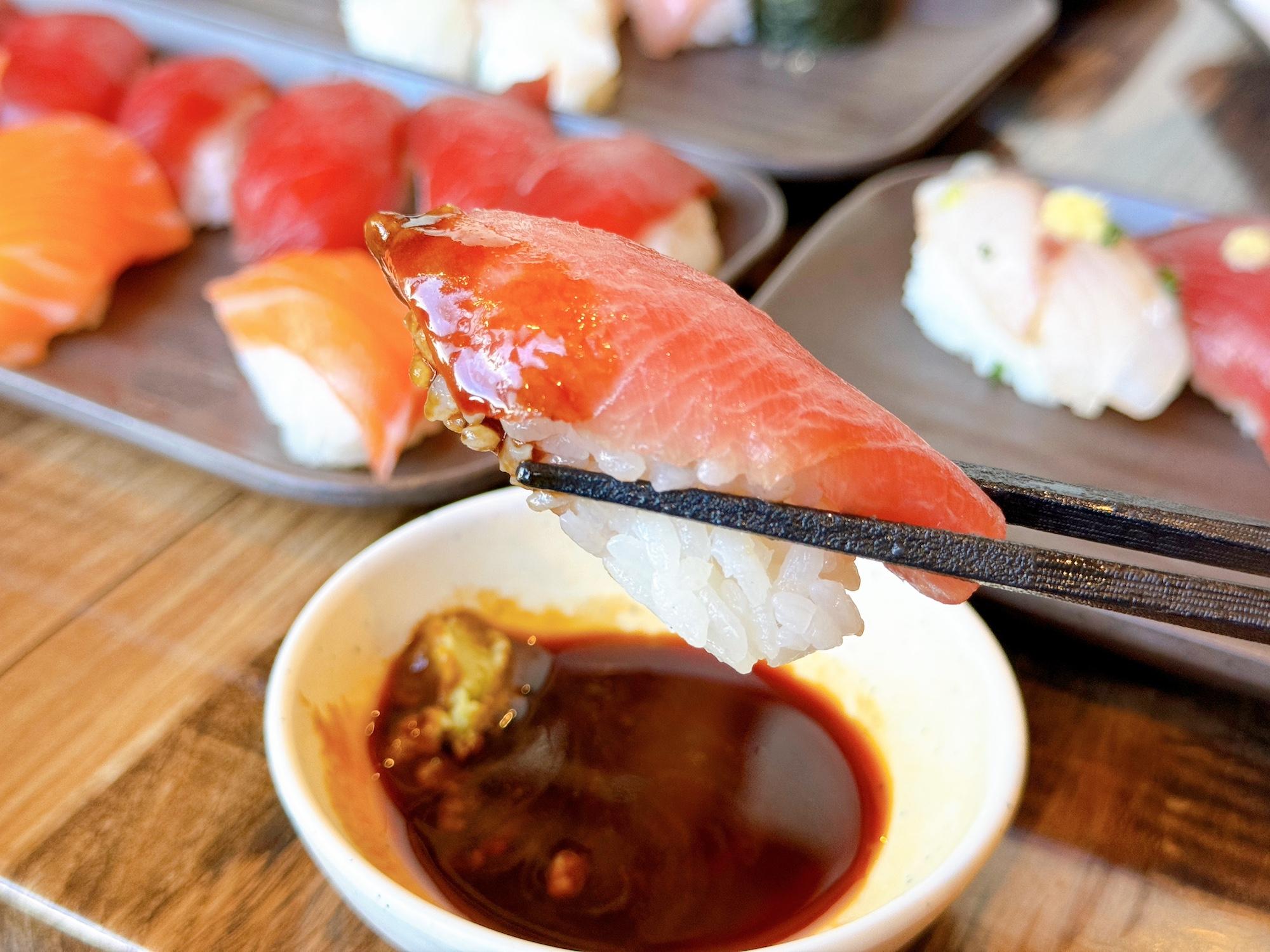 一貫110円のリーズナブルさにも驚きですが、1つ1つのネタも大きいんです!しっかりと脂がのっていて口の中でとろけるような感覚……!