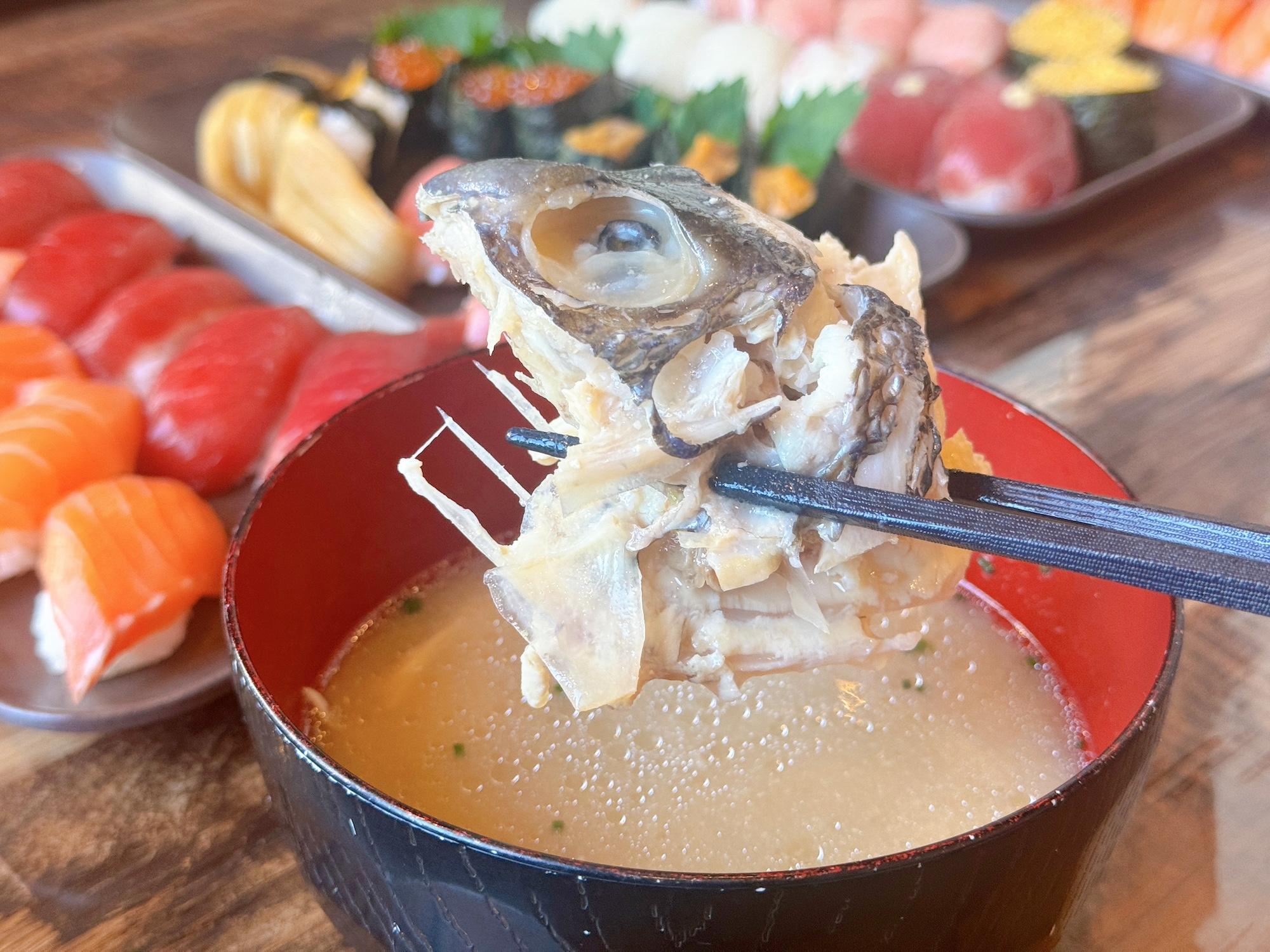 「漁師汁(280円)」はさまざまな魚のアラで作っているので、魚の旨みやエキスが濃縮されていて絶品です!