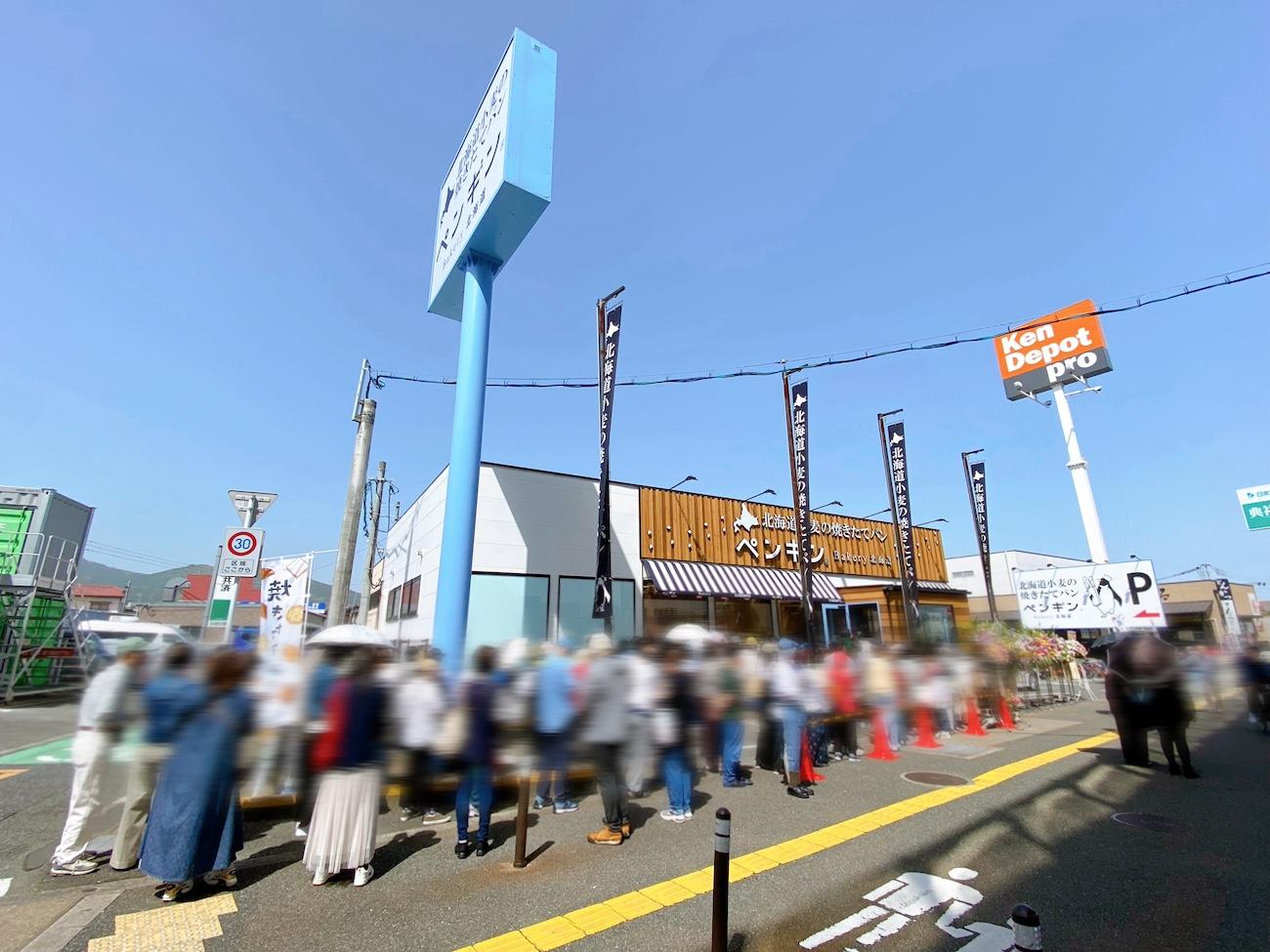 4月19日の10時にオープンしたペンギンベーカリー、筆者が訪れたのは30分前でしたがすでに30人ほどの方が並ばれていました。オープンの時間には長蛇の列となりざっと数えただけでも100人超え!