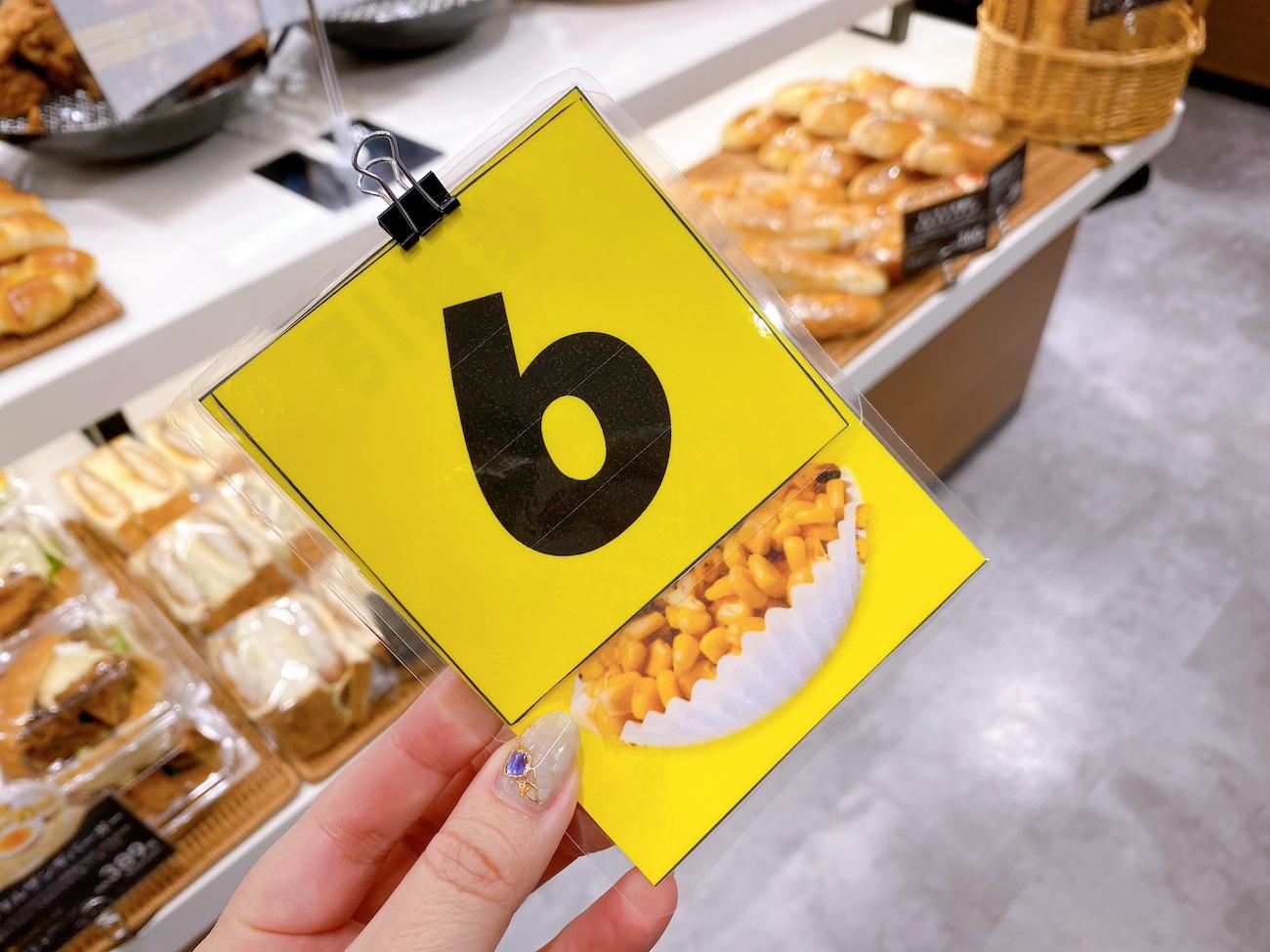 パンを購入の際にこぼれ焼きとうきびパンの購入をレジで伝えると引換券がもらえます。お会計を先に済ませてから工房の入り口へ。