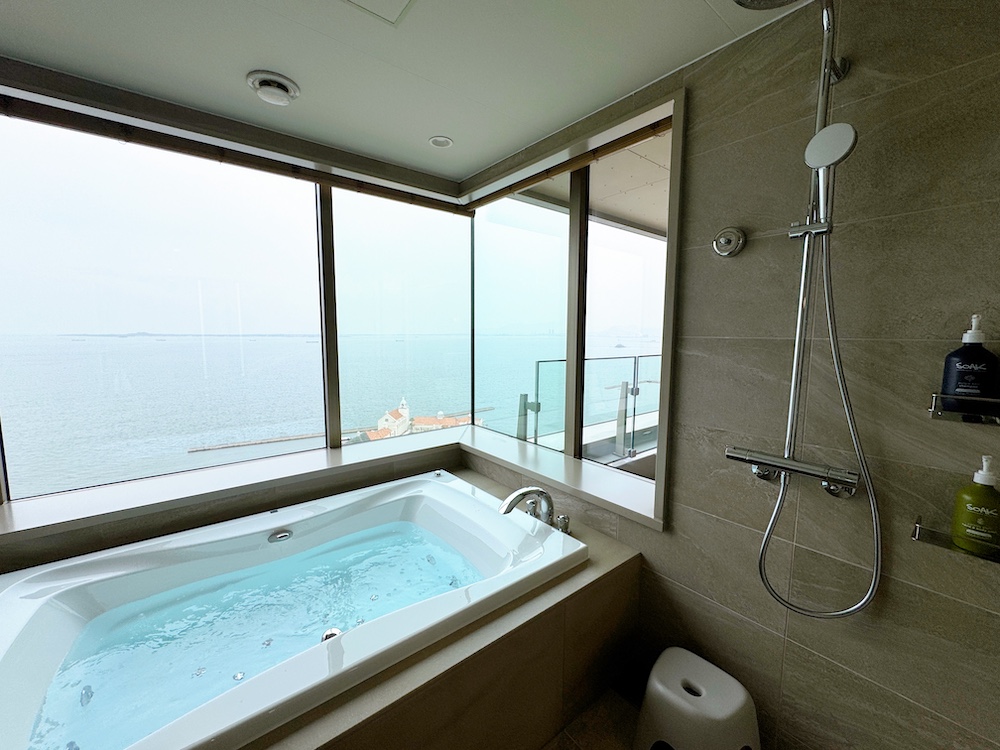 潮風を感じるプライベートテラスに加え、海を一望できるジェットバス(ビューバス)を完備。非日常のひとときを約束してくれます。