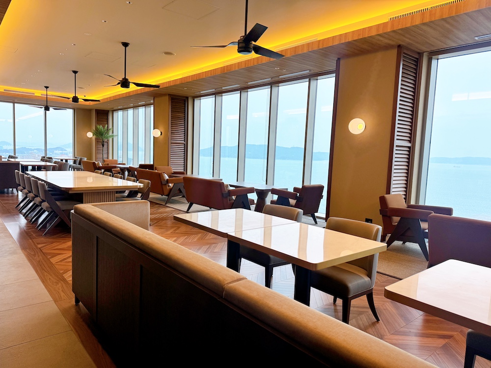 クラブフロア宿泊者専用。福岡市内最大級の広さを誇り、テラス席からは博多湾のパノラマビューを一独占できます。