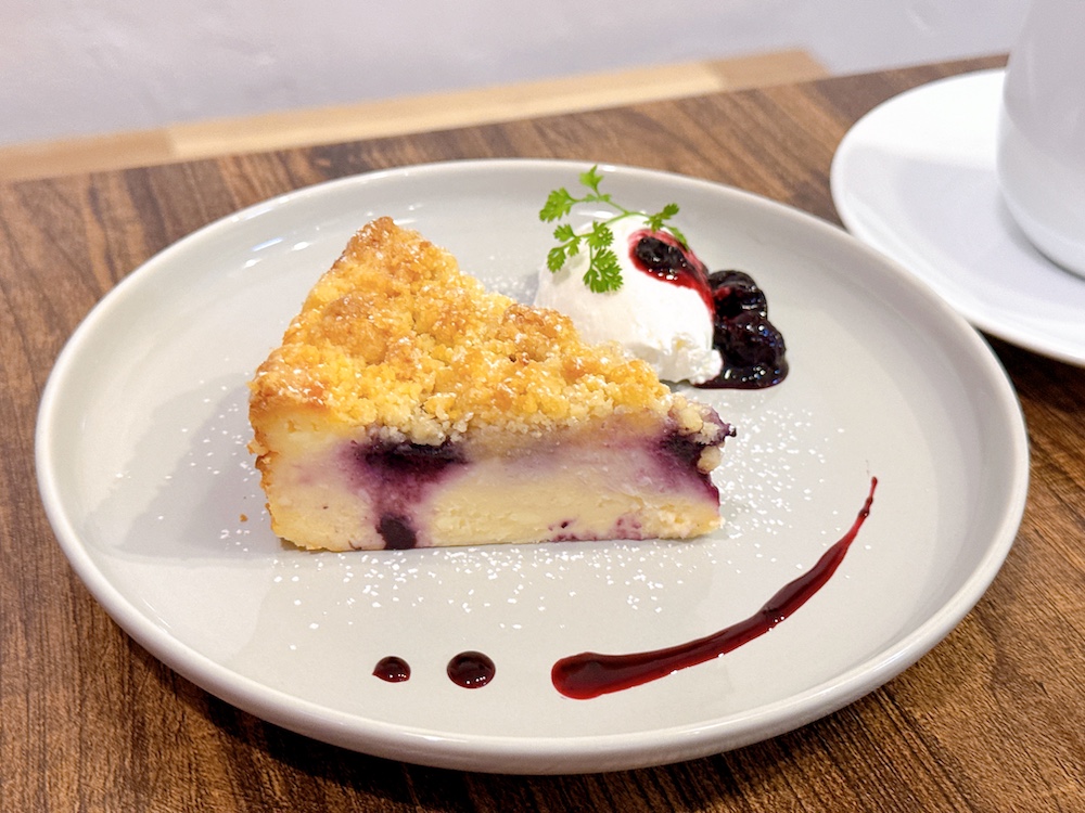 また、その日によって提供されるものが変わるというスイーツも魅力的。出店前のポップアップ期間に人気だったという「クランブルブルーベリーチーズケーキ」は、ブルーベリーの爽やかな酸味がチーズケーキのコクと甘さを引き締める一品。
