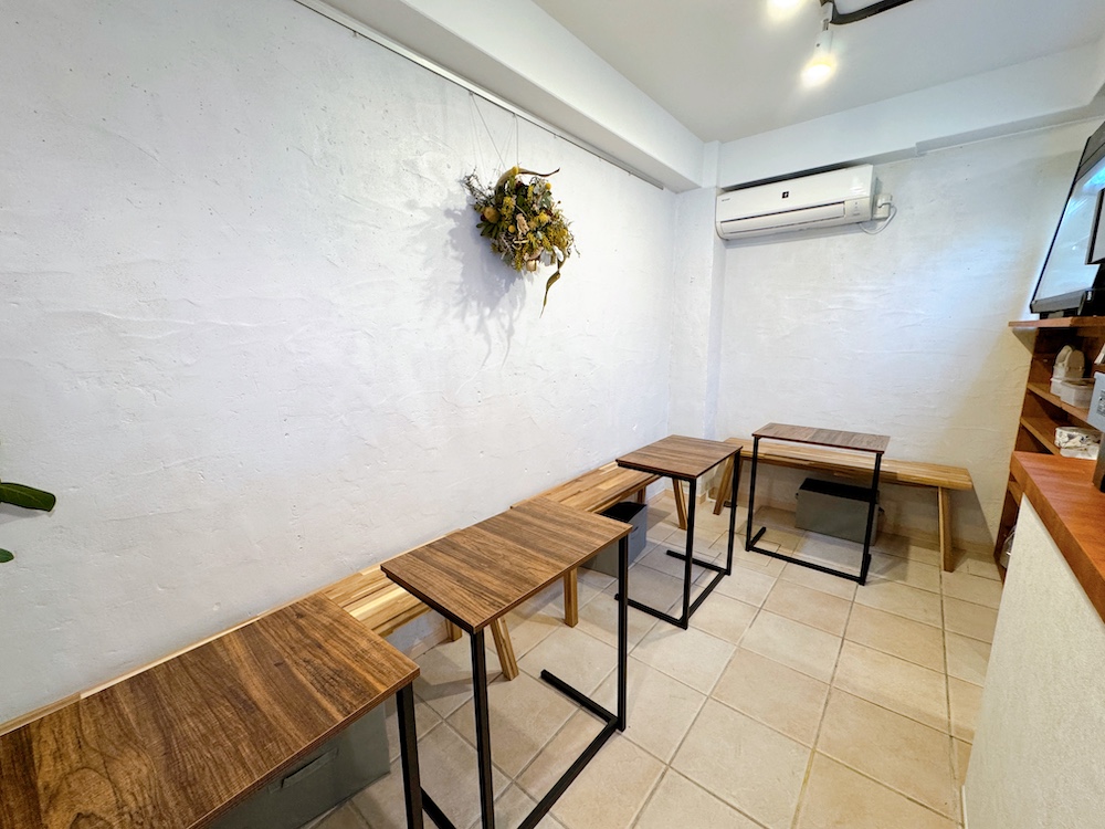 約10席のコンパクトな店内は、お二人で壁を塗って作り上げた温もりのある空間です。海外のカフェのようにドッグフレンドリーであることも特徴で、愛犬と一緒に朝のひとときを過ごすことができます。