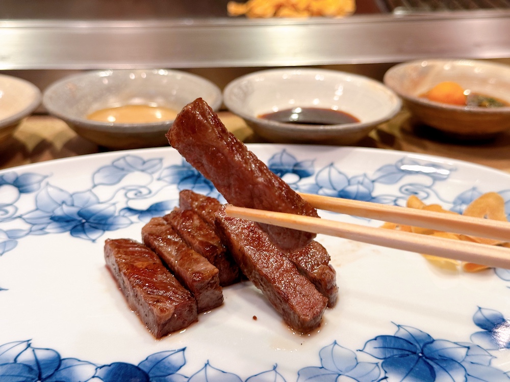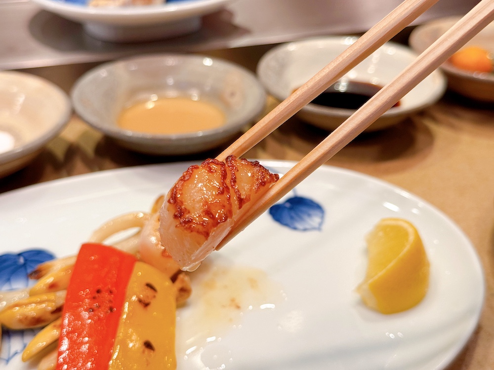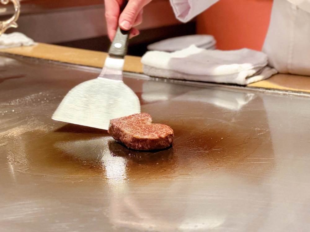 鉄板の上でジュージューと音を立てて仕上げられる様子を眺める時間は、最高に贅沢なプロローグ。