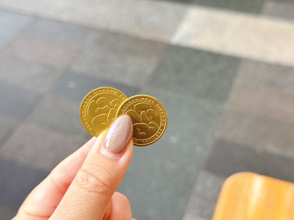 会場内のコイン販売所で手に入れることができます。小銭を気にせずスマートにお肉ハントを楽しめるのもうれしいポイントですね!