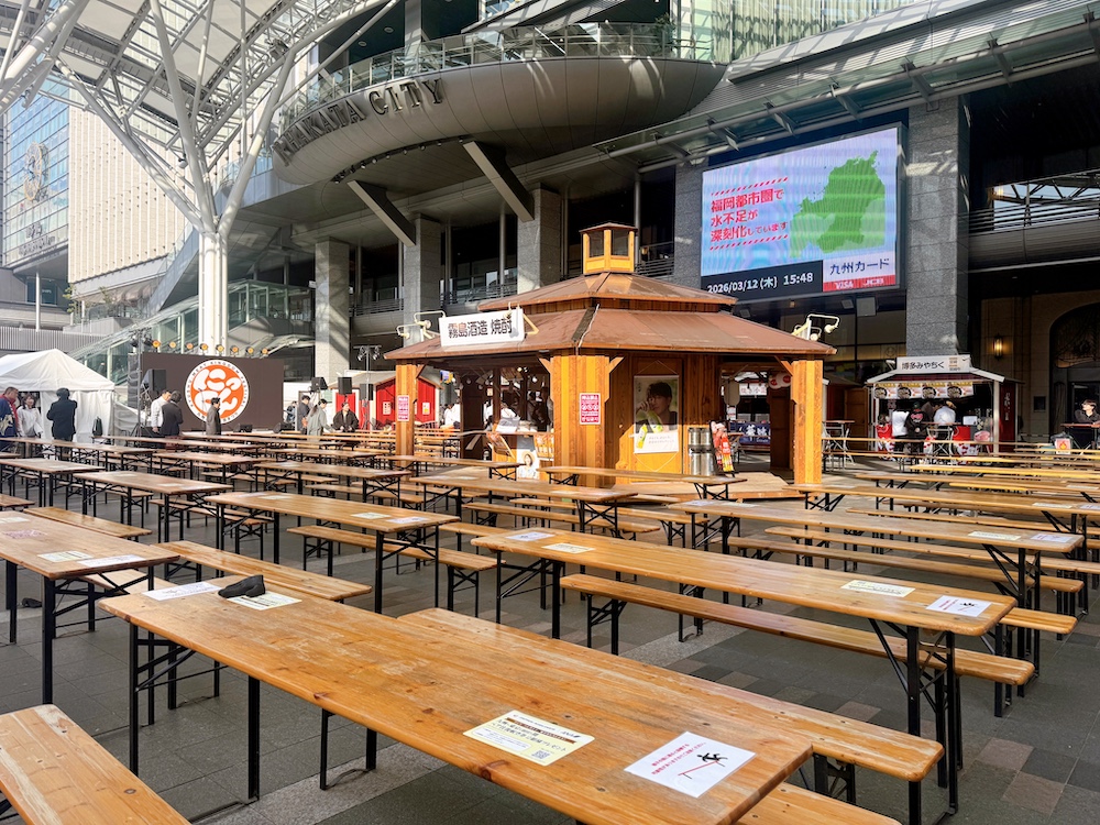 JR博多駅前広場で「にっくん~九州 お肉の王国まつり2026~」が3月12日から15日まで開催中!九州7県のブランド肉を扱う20の名店が一堂に集結。専用コイン「にっくん」を使って、鹿児島黒牛の大トロステーキ丼など絶品肉料理の食べ比べを楽しめる大注目のグルメイベントを現地から実食レポートします。