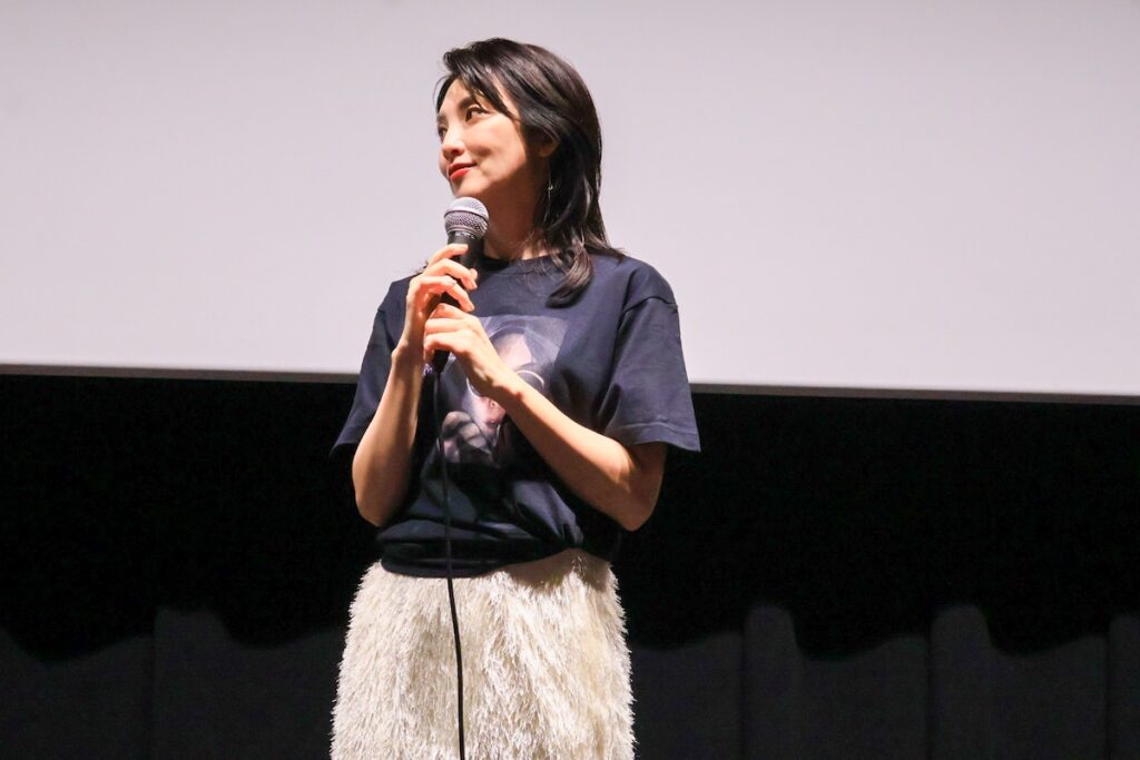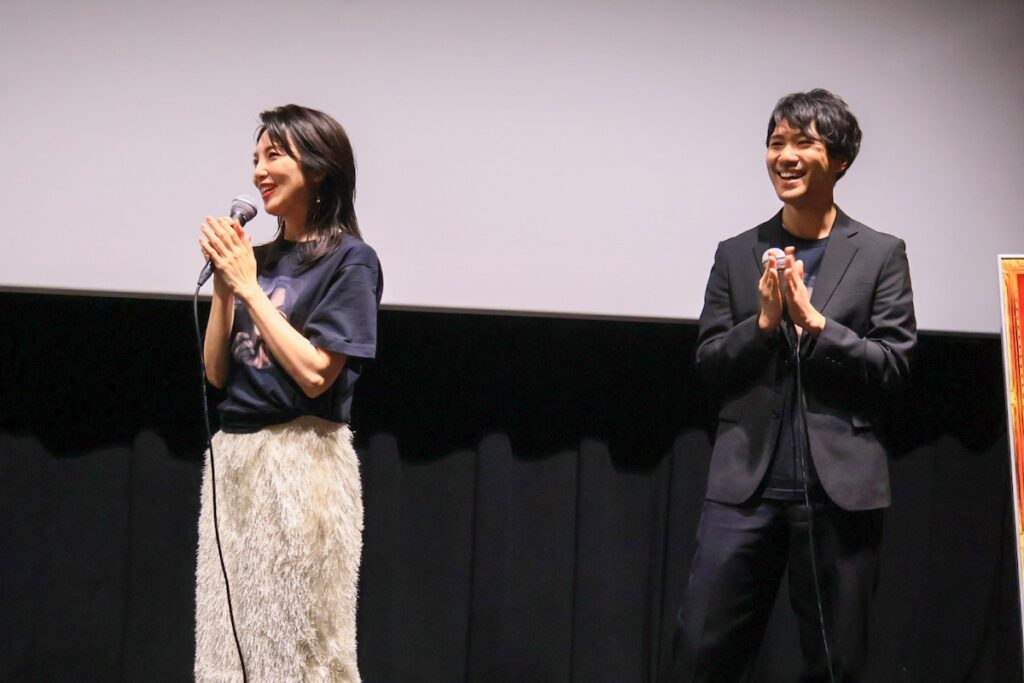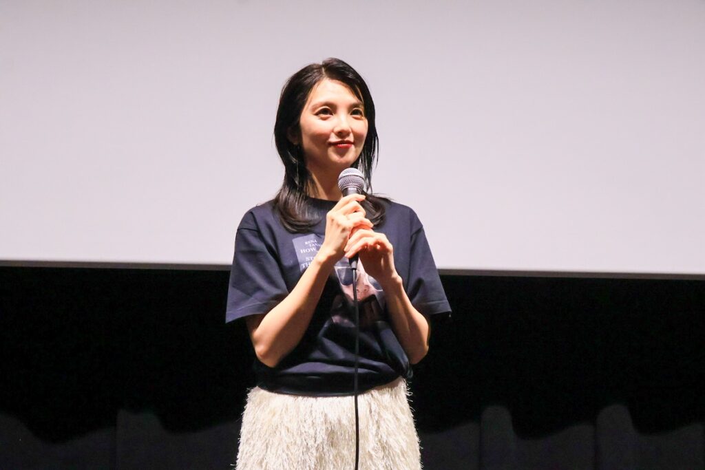 満席の観客からの大きな拍手で迎えられた主演の田中麗奈さんと萱野孝幸監督。田中さんが「福岡帰ってきたばい」と博多弁で挨拶すると、会場の空気は一気に親密さを増し、大きな歓声が上がりました♪