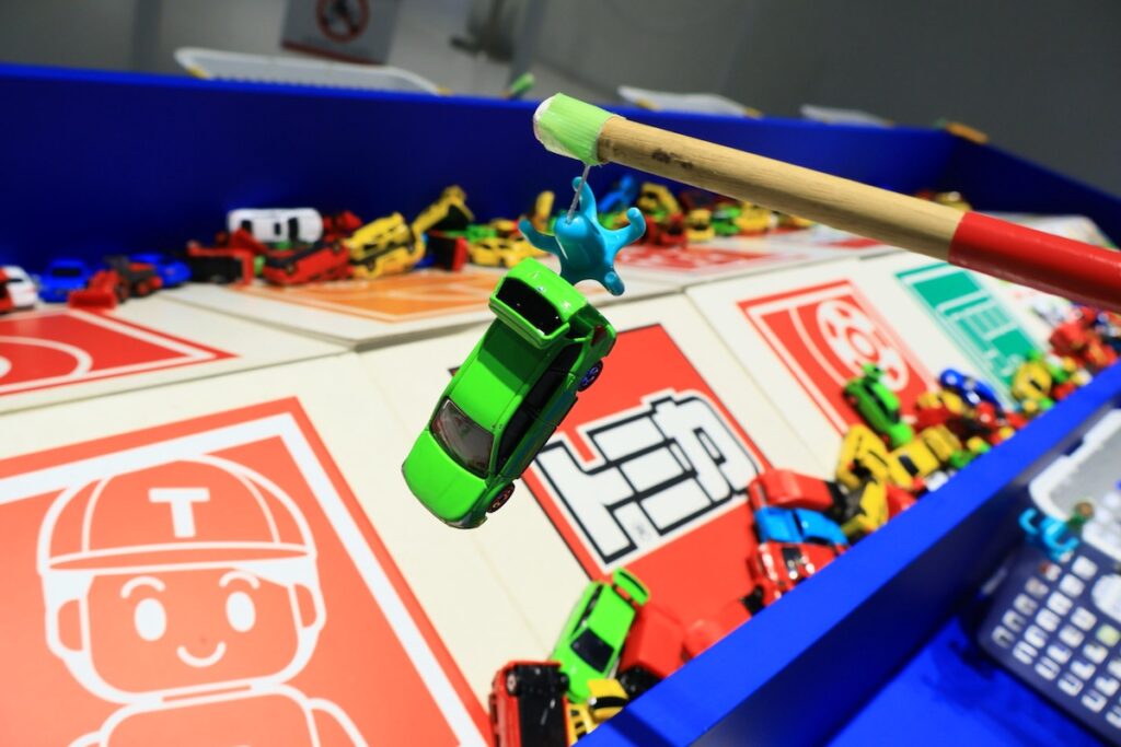 また、大定番の「トミカつり(1回600円)」は、つりざおを使って欲しいトミカを釣り上げるワクワク感がたまりません。