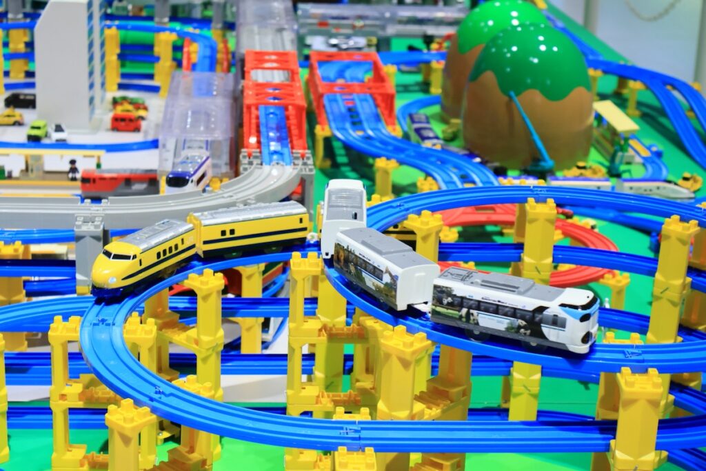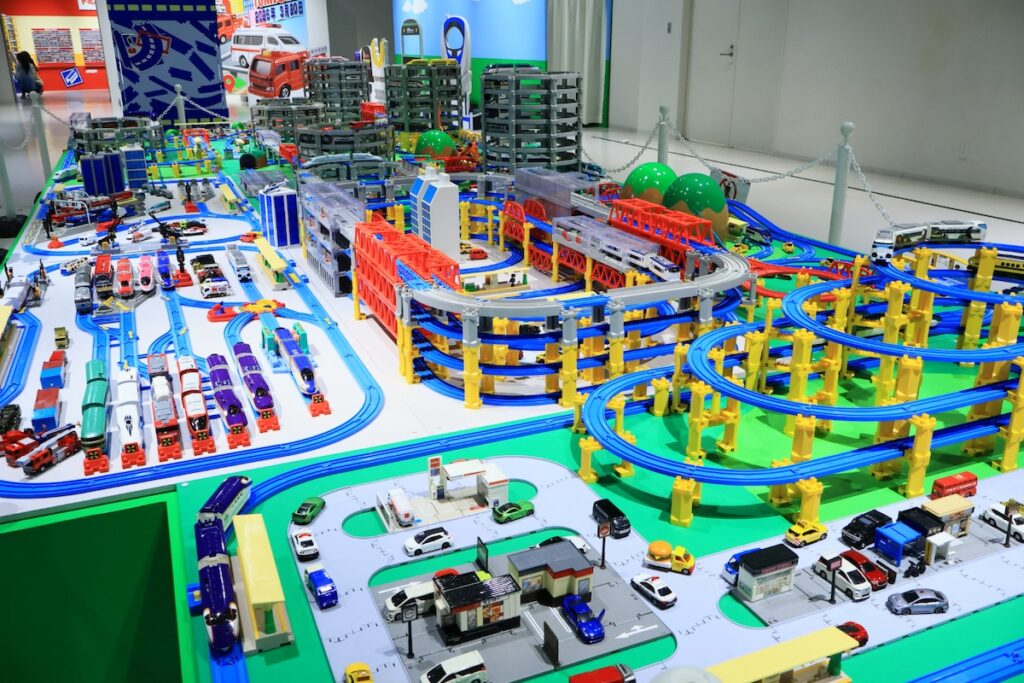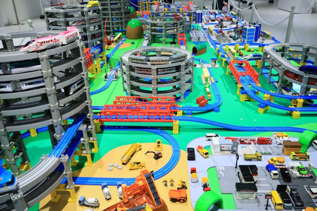 おなじみのトミカが街中を走り抜け、プラレールの列車が何層にも重なったレールを駆け巡る様子は子どもはもちろん大人も思わず見入ってしまうほどのスケール感です。