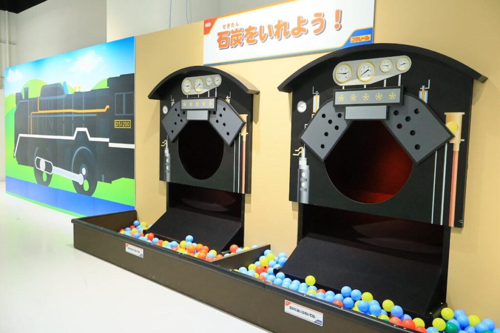 新登場の蒸気機関車にボールを入れて遊ぶ「石炭を入れよう」では夢中でボールを入れる子どもたちの姿が目に浮かびますね♪