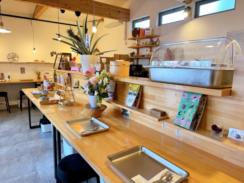 キッチン前のカウンター席と、壁際のカウンター席でおひとりでの利用もしやすい雰囲気。