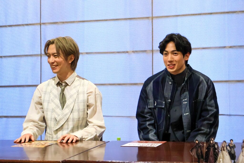 取材会には、吟遊詩人なロビン・ブレイク役(Wキャスト)の有澤樟太郎さんと、スペイン王子フェリペ役(Wキャスト)の松島勇之介さんが登壇しました。