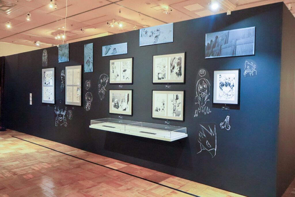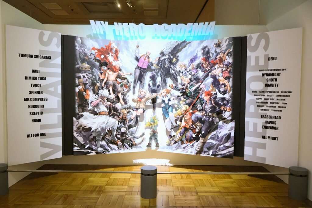 「誰もが何かしらの超常能力・“個性”を持つ世界」を舞台に、最高のヒーローを目指す主人公・デク(緑谷出久)たちの成長を描いた本作。会場には、なんと額数277点、展示枚数510枚という大ボリュームの原画や制作資料がずらりと並びます。