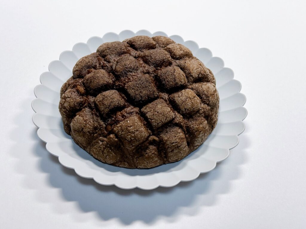 袋を開けた瞬間から甘いチョコレートの香りがふわりと漂います。表面にはサクッとしたチョコビスケット生地が被せられており、中の生地にはチョコチップがたっぷりと練り込まれています。