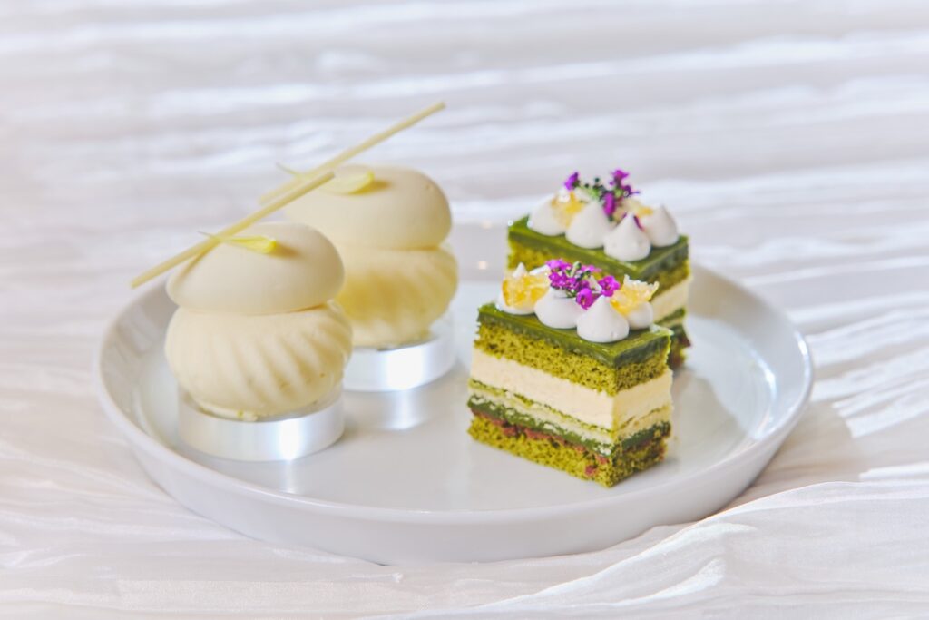 さらには「抹茶とレモンのオペラ」など、見た目も美しい6種類のスイーツが並びます。和と洋の素材が見事に調和した、甘美なマリアージュを堪能できますよ♪