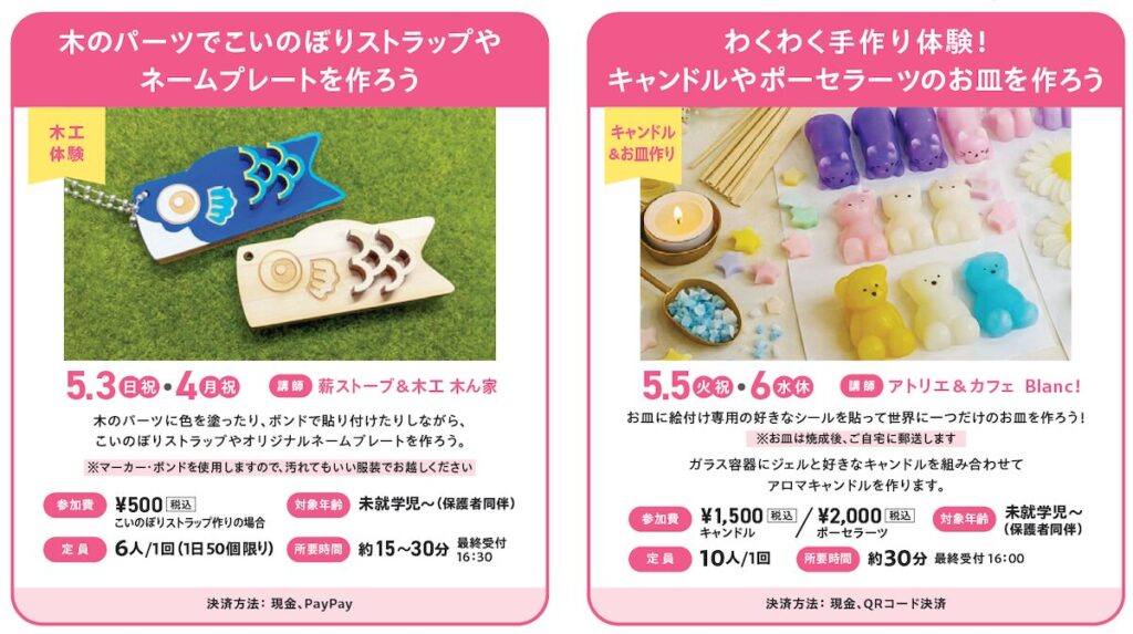 - 5月3日(日・祝)・4日(月・祝):木工体験