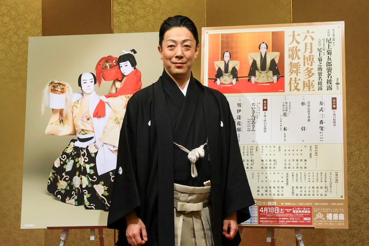 2つございます。1つは、私自身が『茨木』、そして『ぢいさんばあさん』で大きな役をつとめさせていただくことです。もう1つは、博多座公演のために音羽屋を象徴する華やかな「祝い幕」を新調していただいたことです。有名な作家さんに描いていただいたもので、ぜひ客席での楽しみの一つにしていただければと思います。